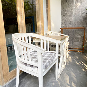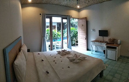The starfish room is facing the pool on the first floor. Enjoying coffee while relaxing with the outside table is one of the enjoyment.